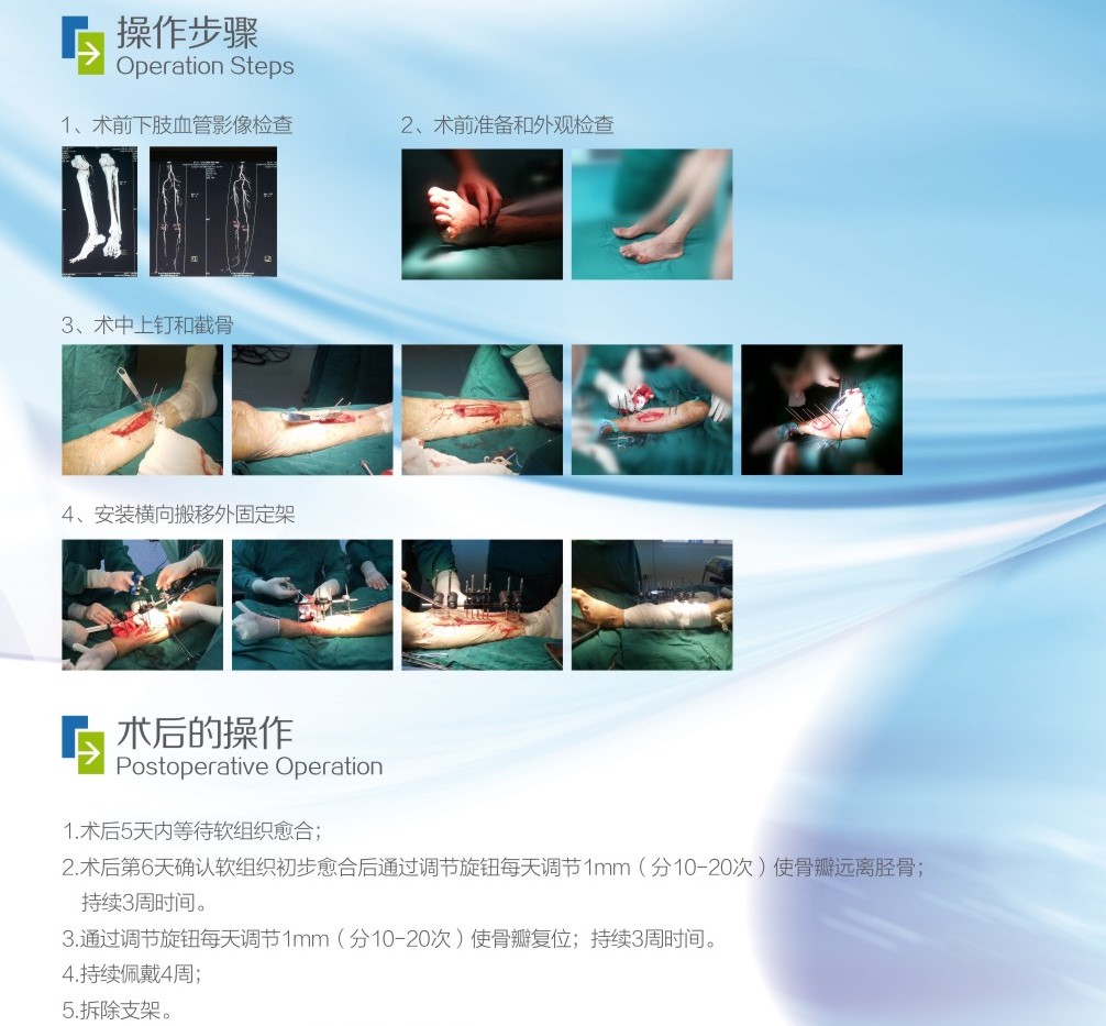 相比較其他解決手段,如血管旁路轉流術,主動脈內膜剝脫術,帶蒂大網膜移植術,皮腔內血管成形術,干細胞移植。治療費用低,無明顯并發癥。能真實解決病患的下肢疼痛,冰冷感;改善下肢血運。